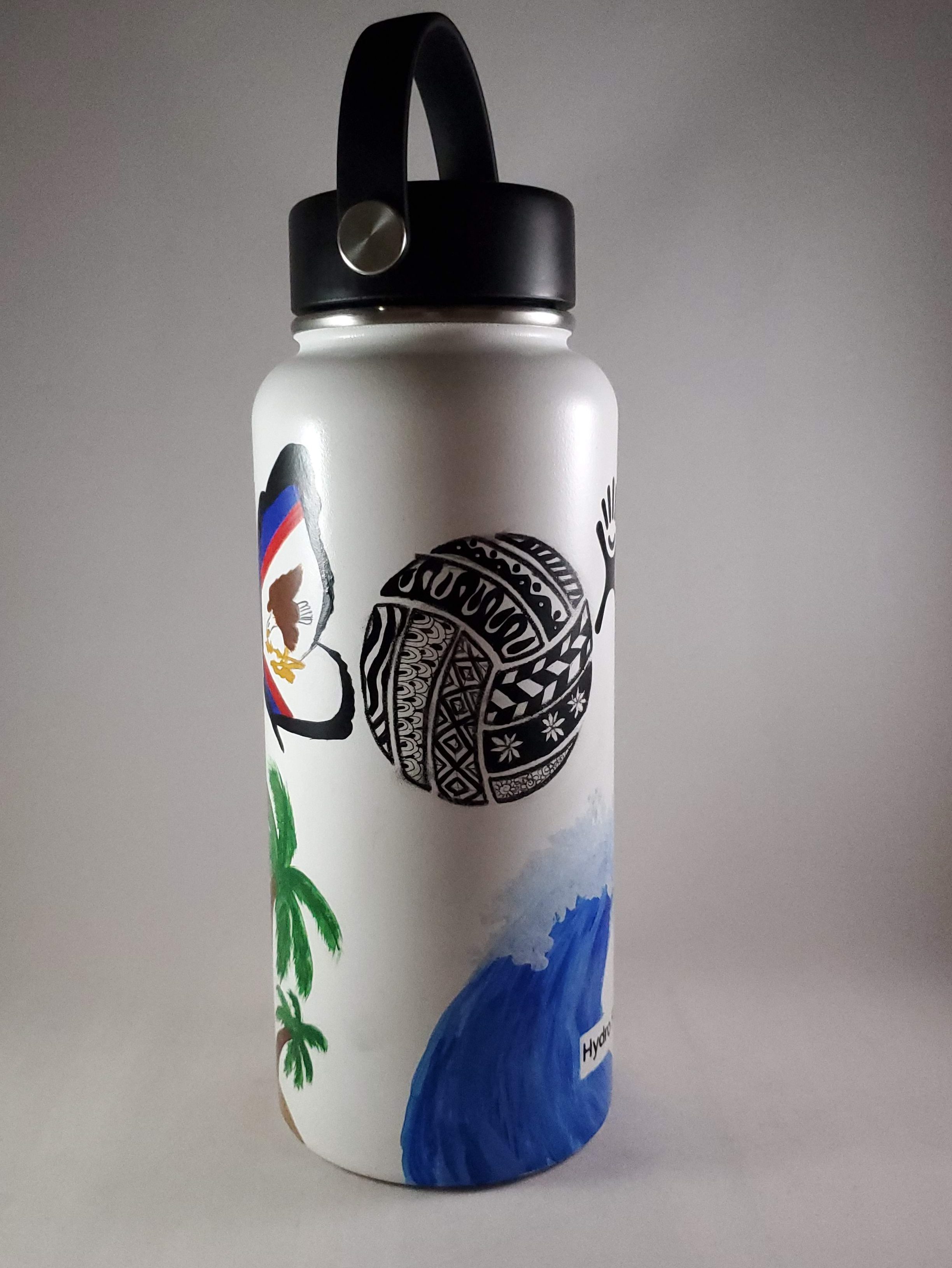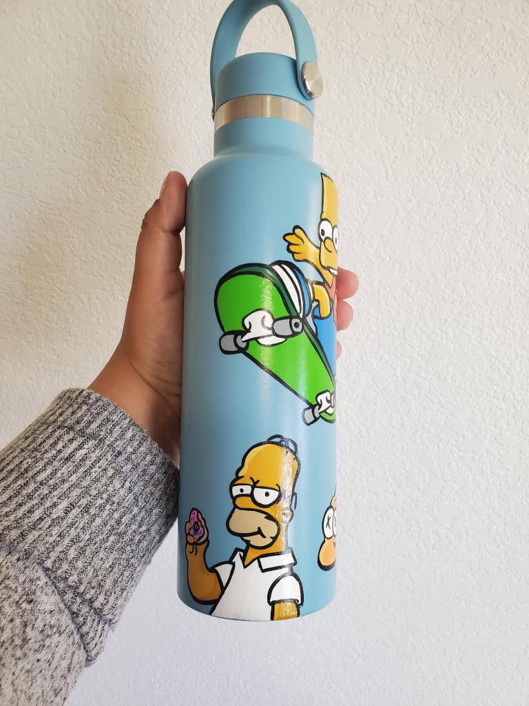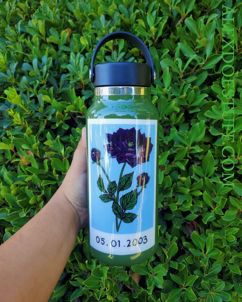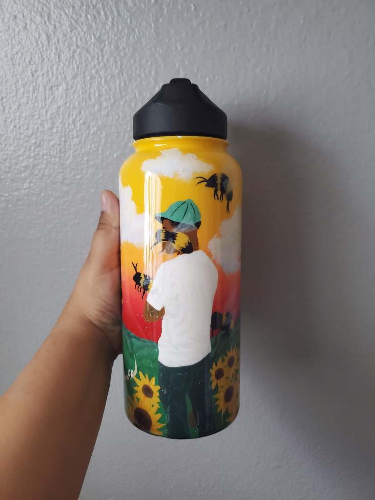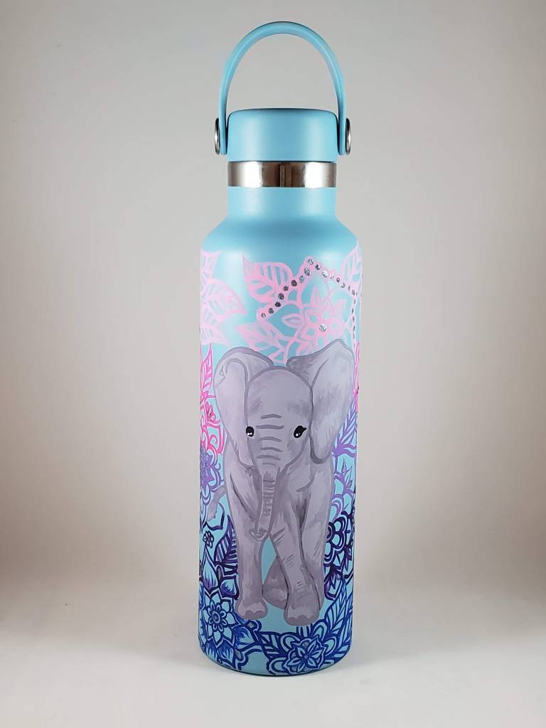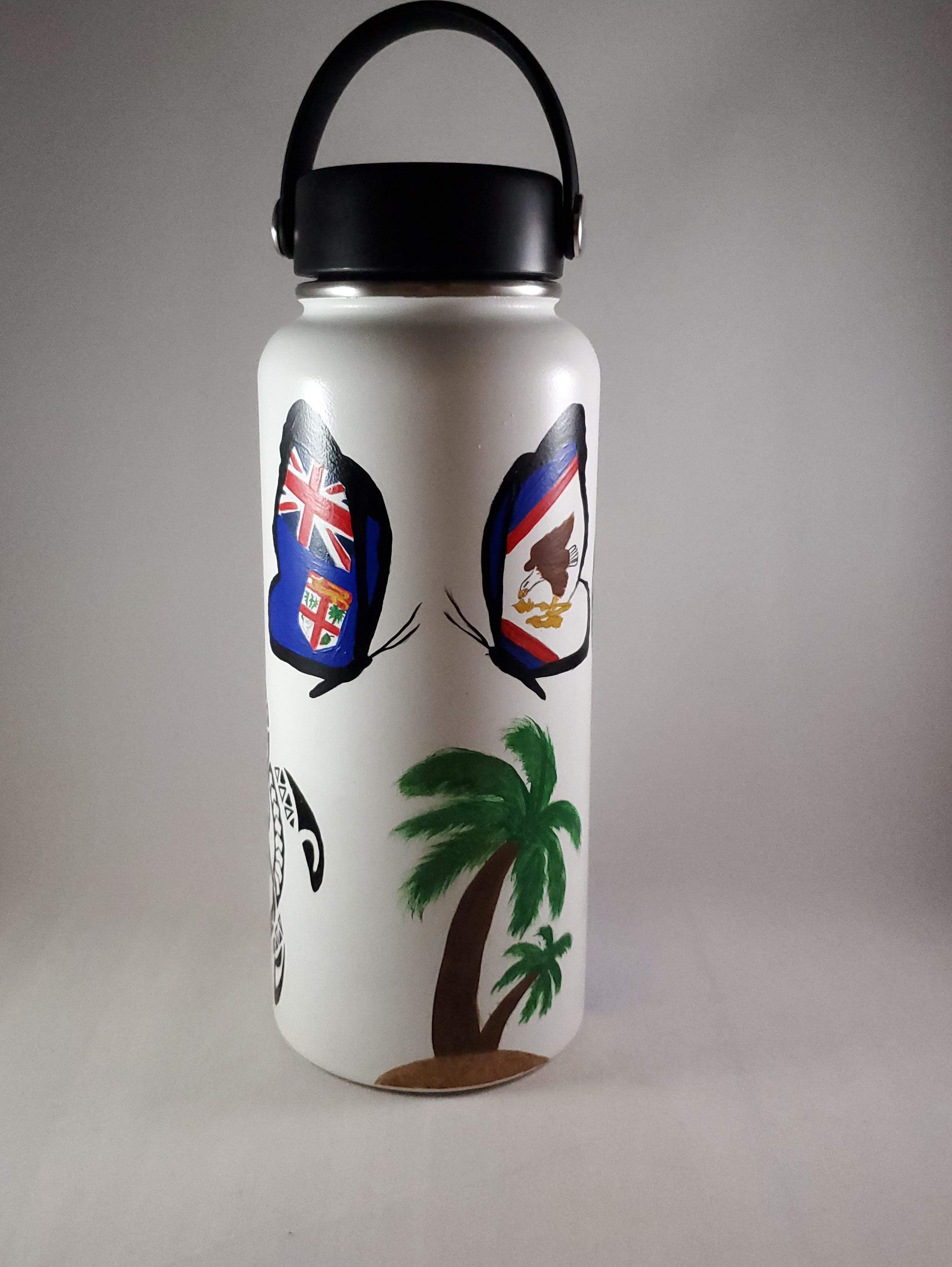 Each painted bottle is uniquely hand painted on a high quality re-usable water bottle to the customer’s request. Acrylic paint is carefully used to bring the design to life and a food safe resin is applied and cured to ensure that no damage comes to the painting. The resin coating also provides an additional layer of protection to the bottle’s original integrity. Contact to Order.