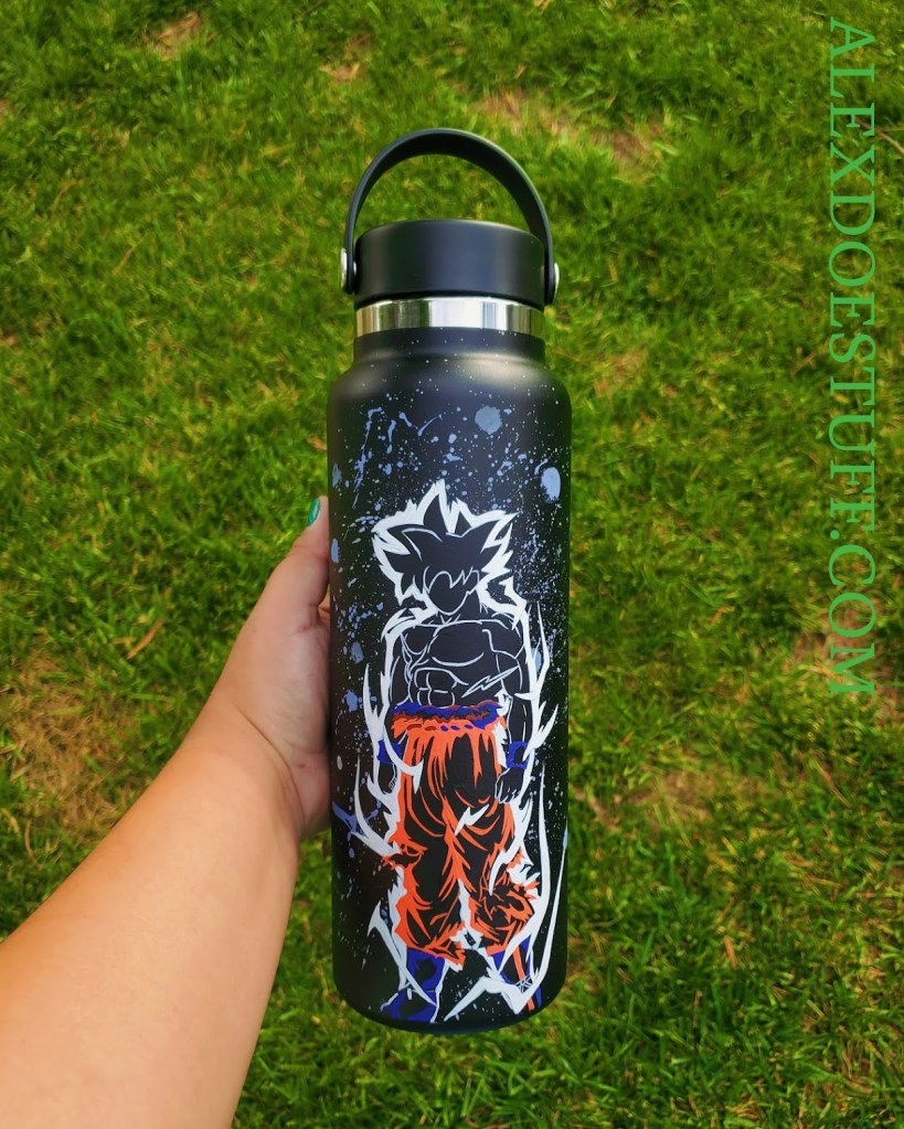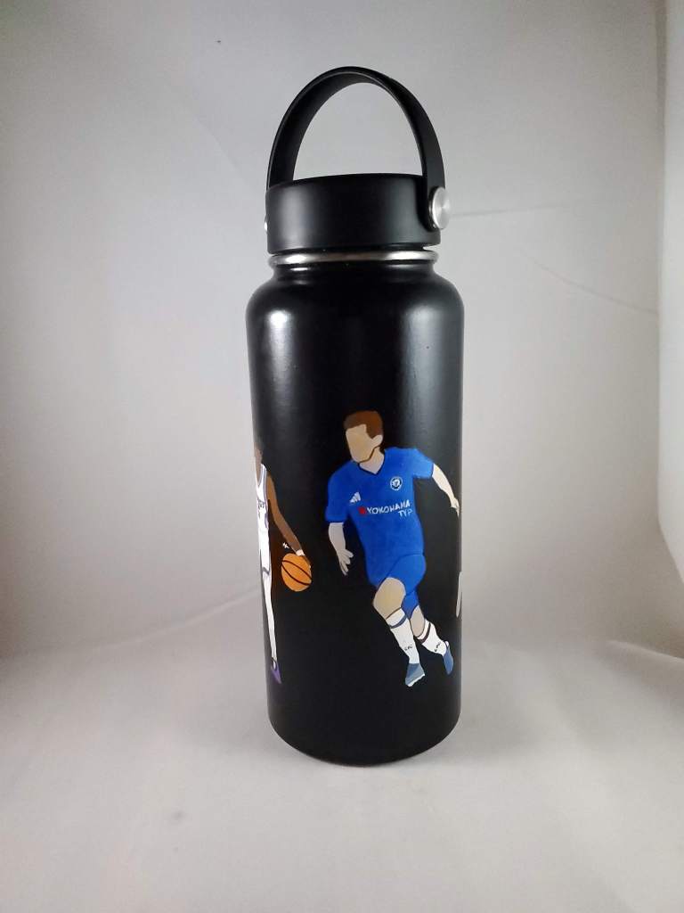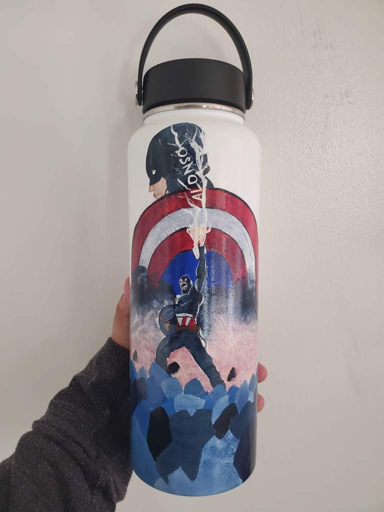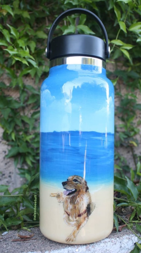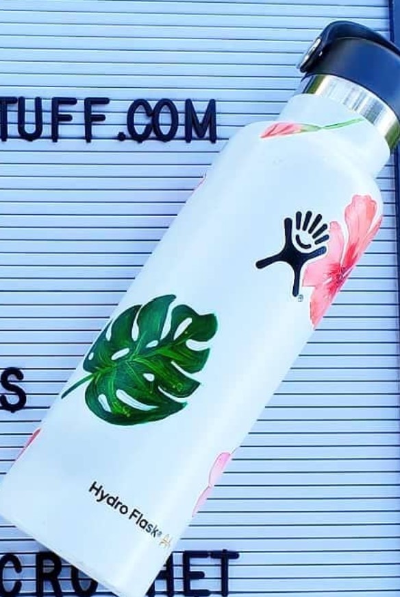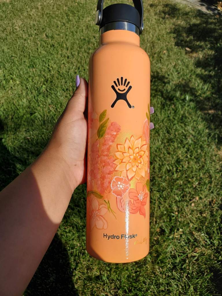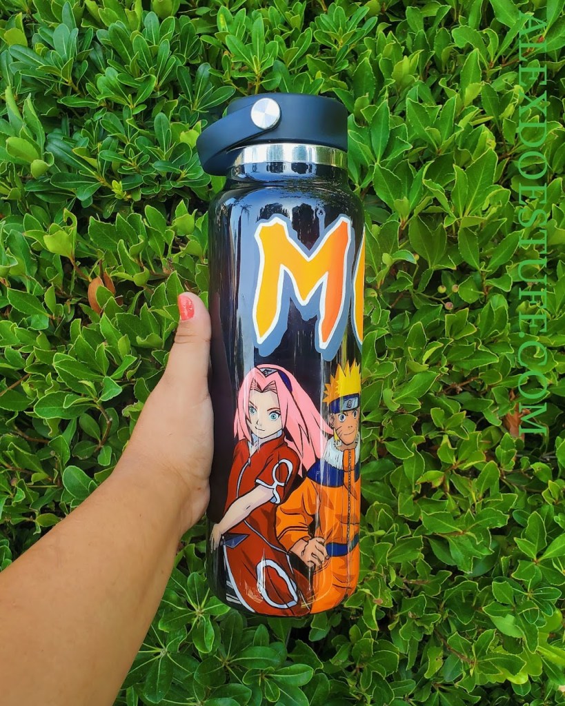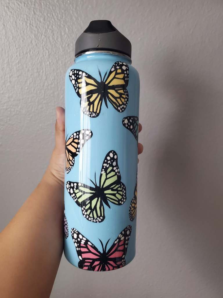 Each painted bottle is uniquely hand painted on a high quality re-usable water bottle to the customer’s request. Acrylic paint is carefully used to bring the design to life and a food safe resin is applied and cured to ensure that no damage comes to the painting. The resin coating also provides an additional layer of protection to the bottle’s original integrity. Contact to Order.