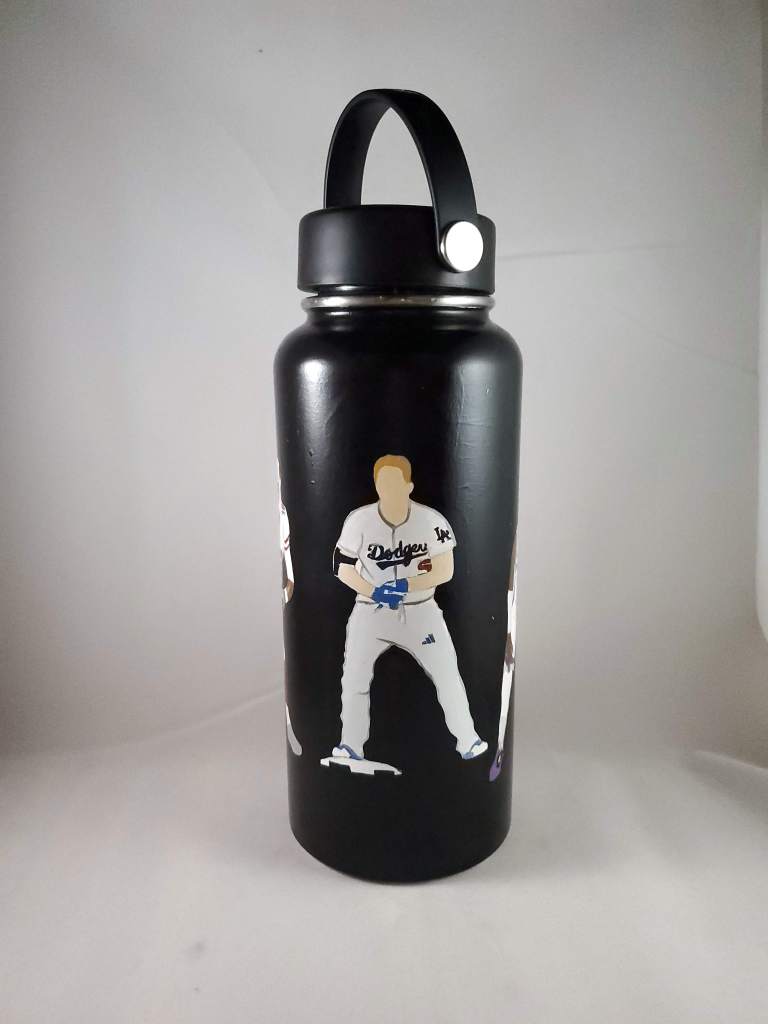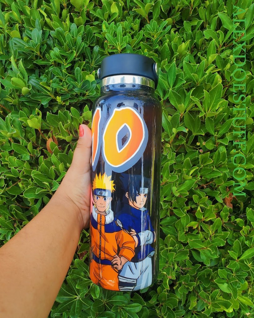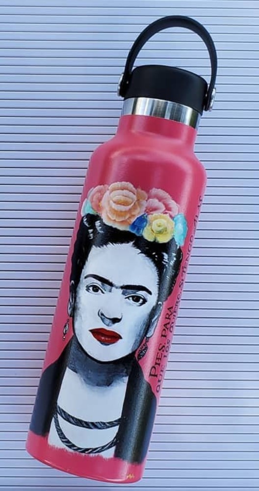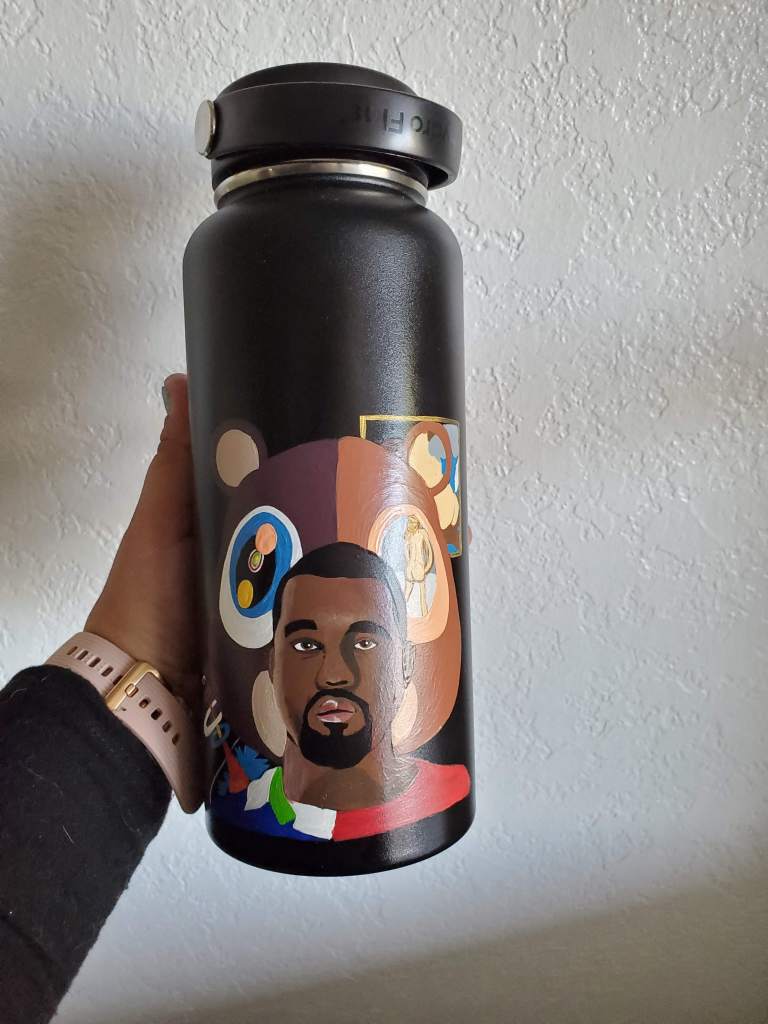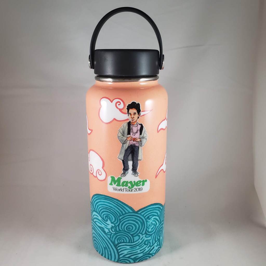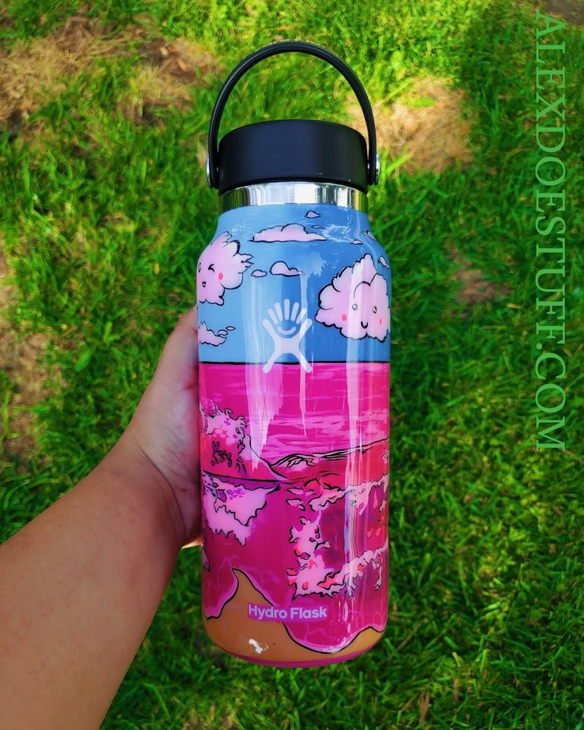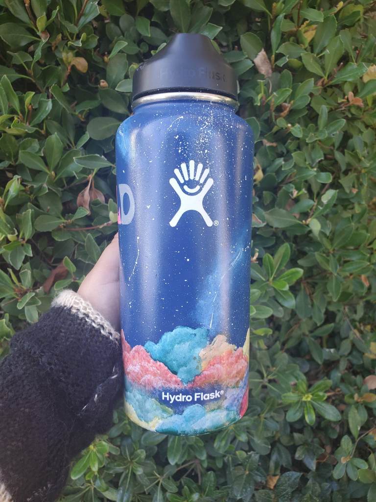 Each painted bottle is uniquely hand painted on a high quality re-usable water bottle to the customer’s request. Acrylic paint is carefully used to bring the design to life and a food safe resin is applied and cured to ensure that no damage comes to the painting. The resin coating also provides an additional layer of protection to the bottle’s original integrity. Contact to Order.