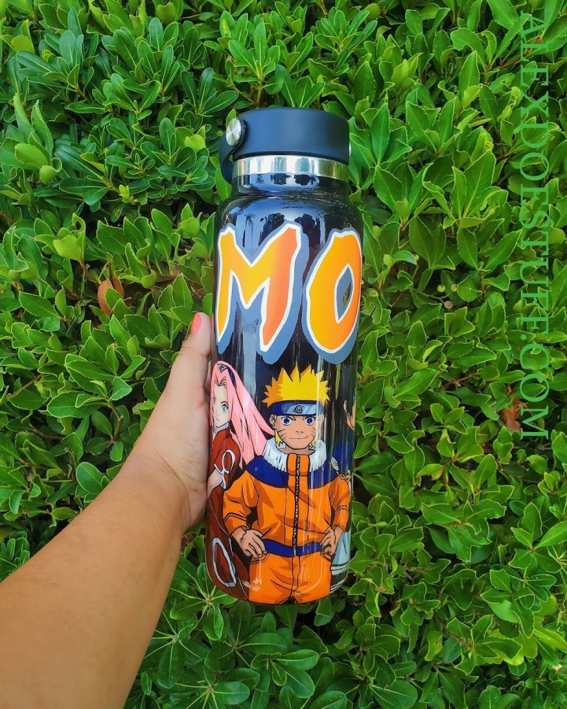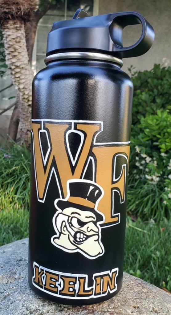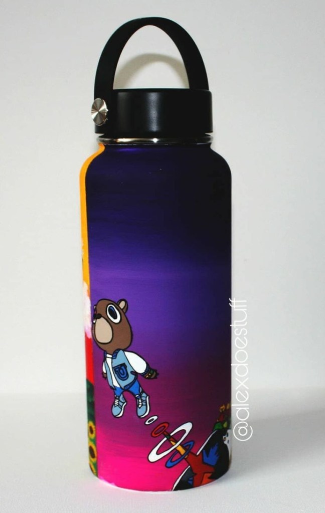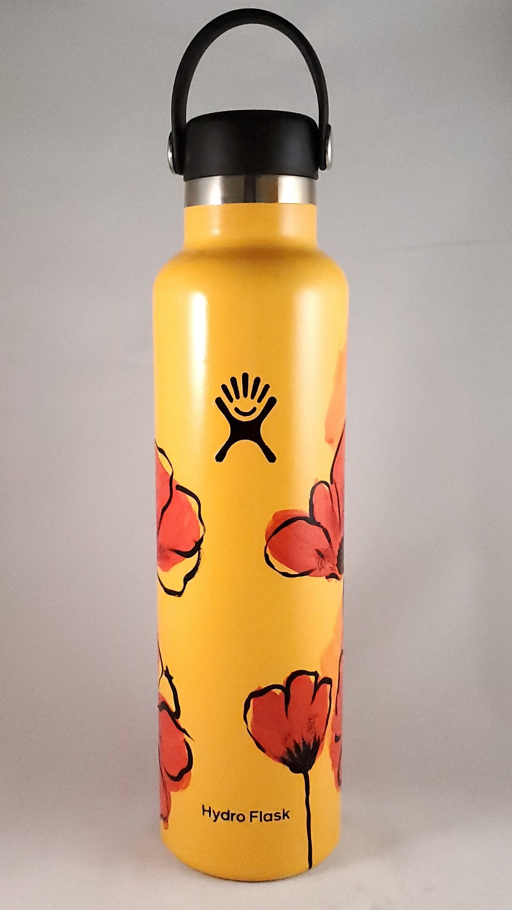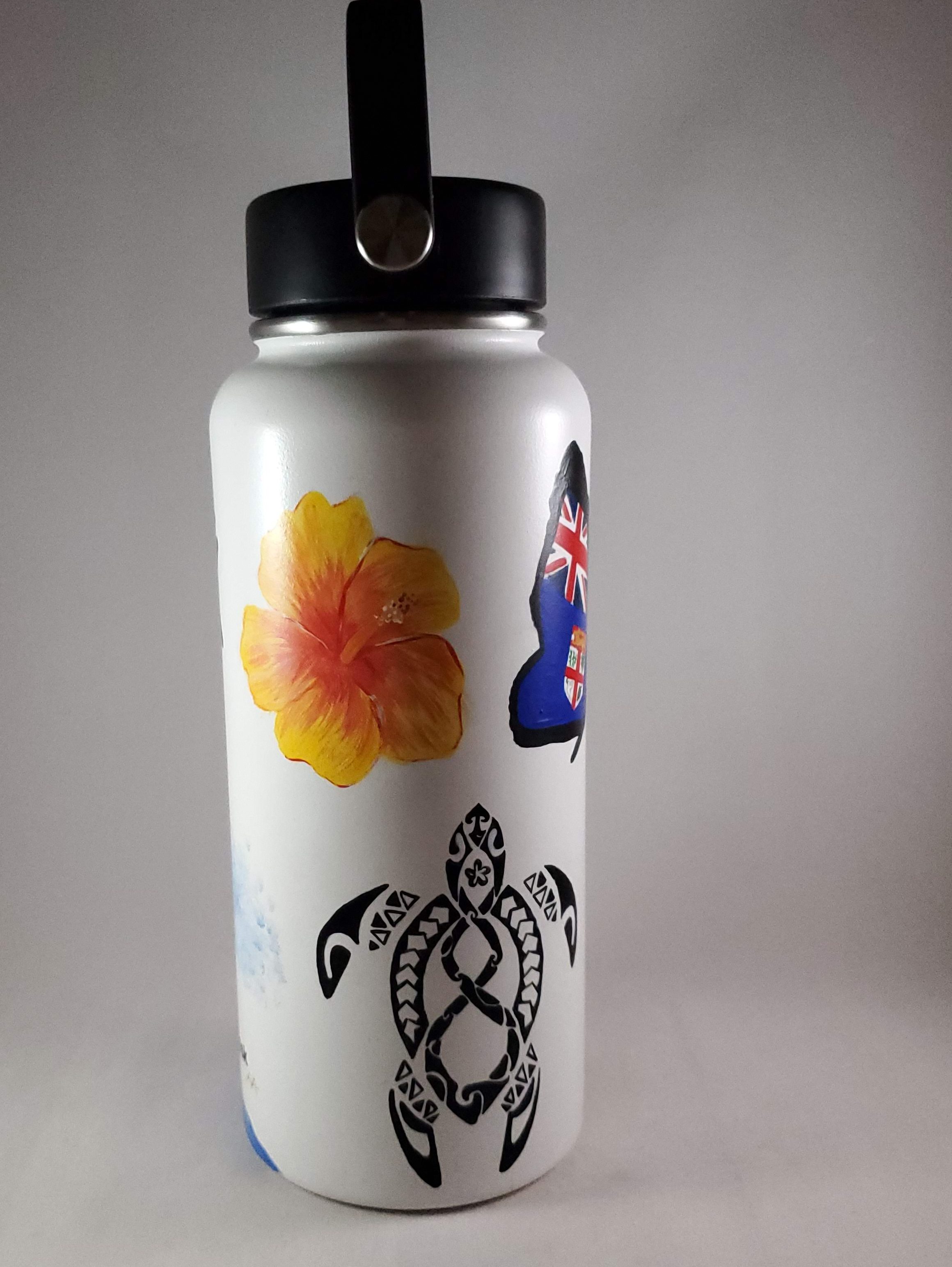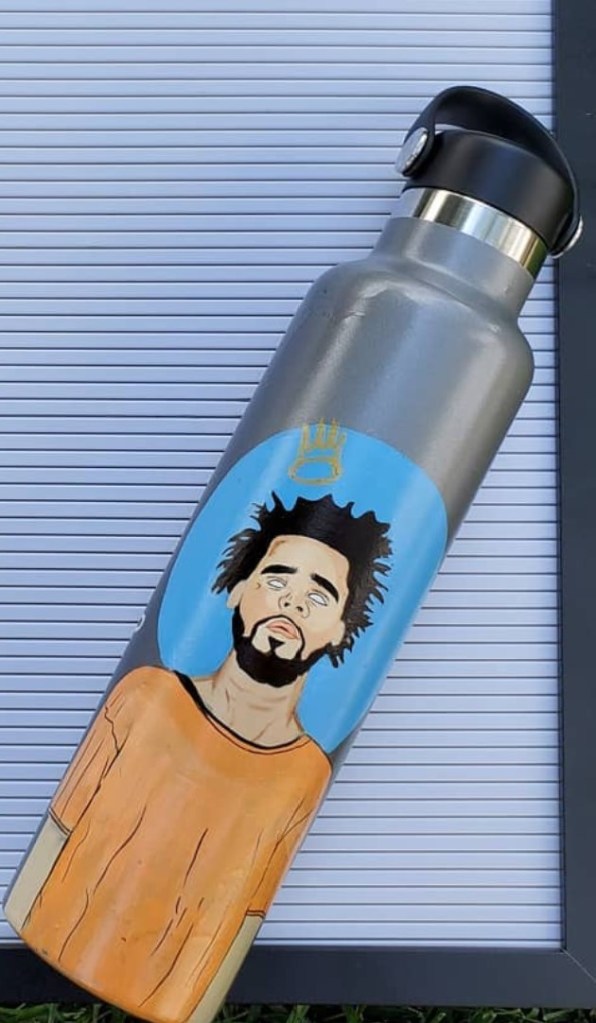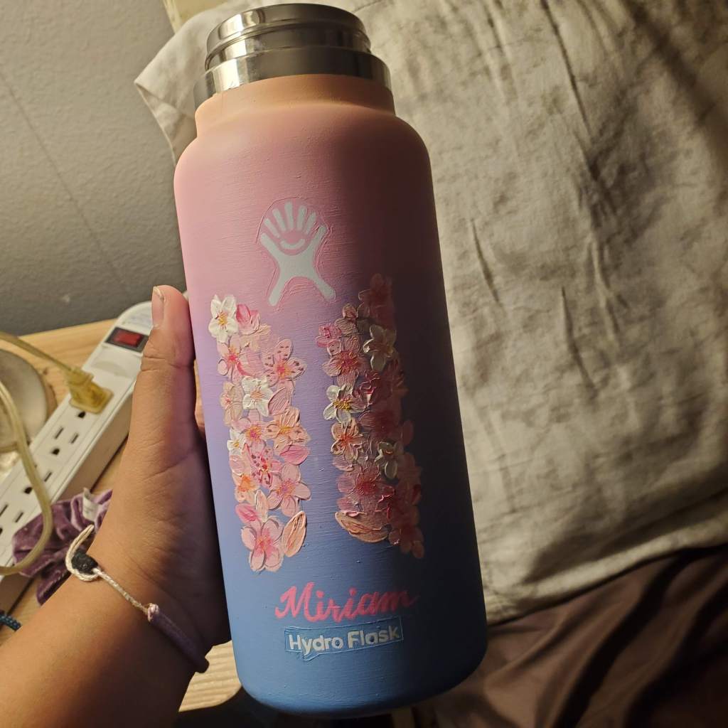 Each painted bottle is uniquely hand painted on a high quality re-usable water bottle to the customer’s request. Acrylic paint is carefully used to bring the design to life and a food safe resin is applied and cured to ensure that no damage comes to the painting. The resin coating also provides an additional layer of protection to the bottle’s original integrity. Contact to Order.