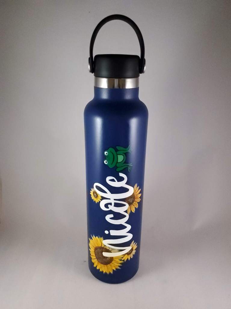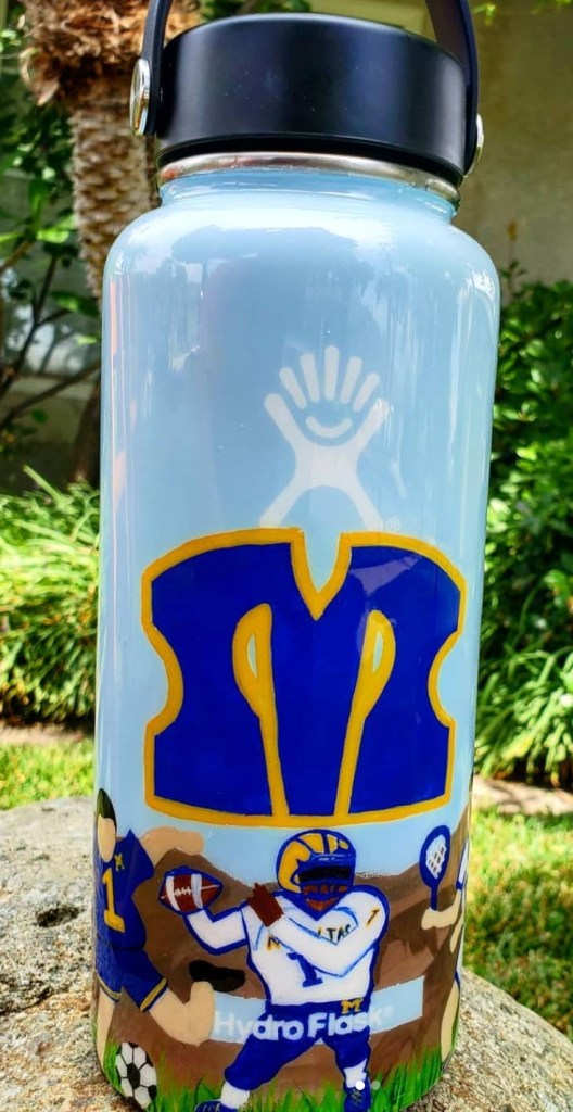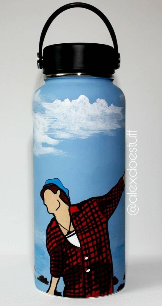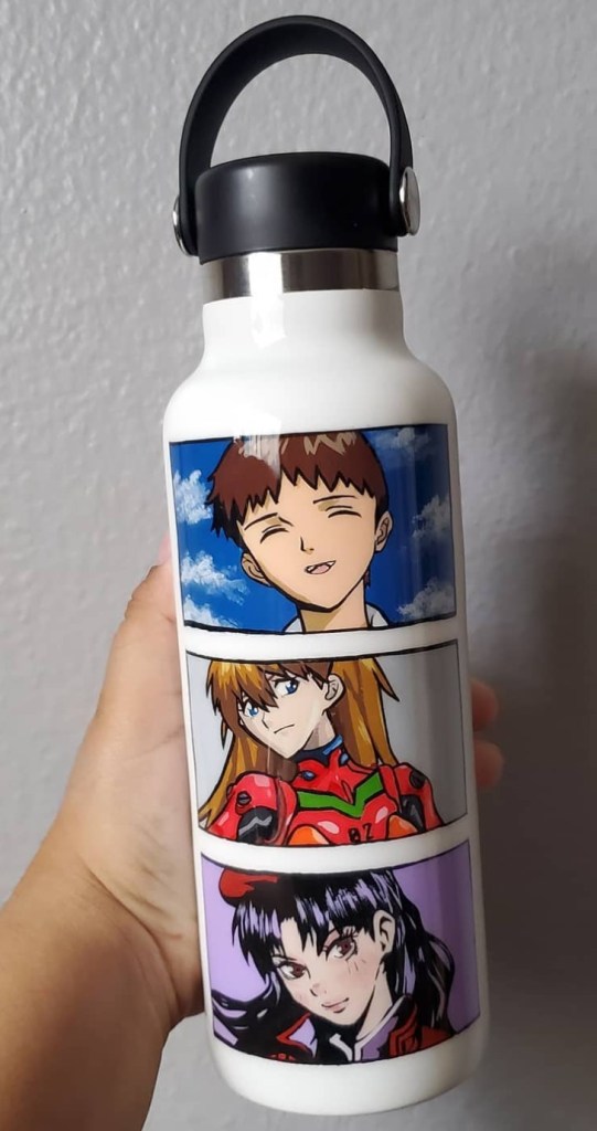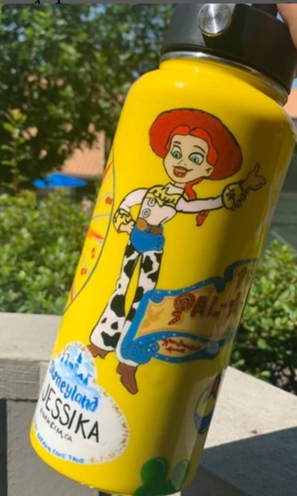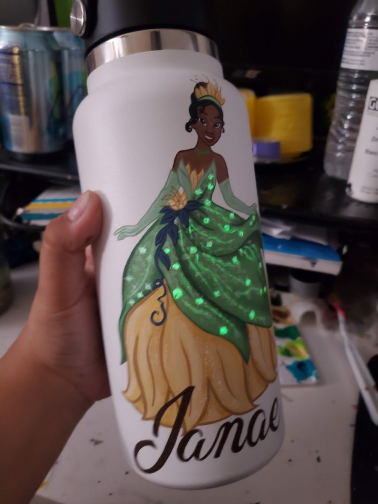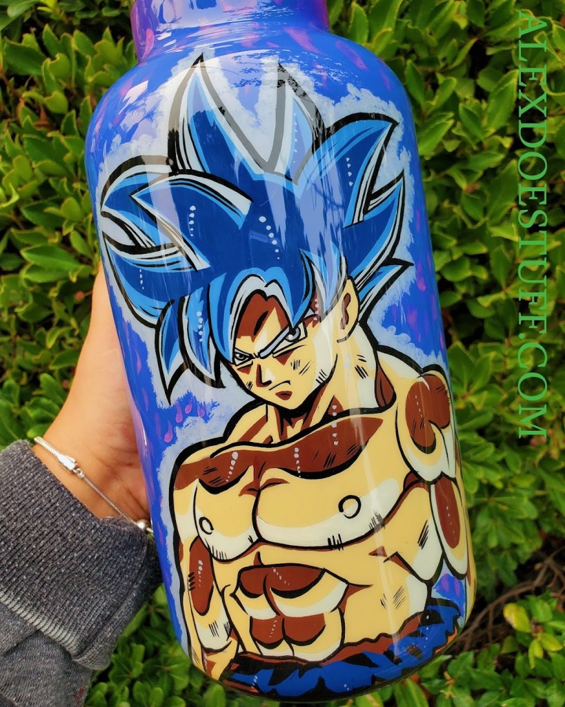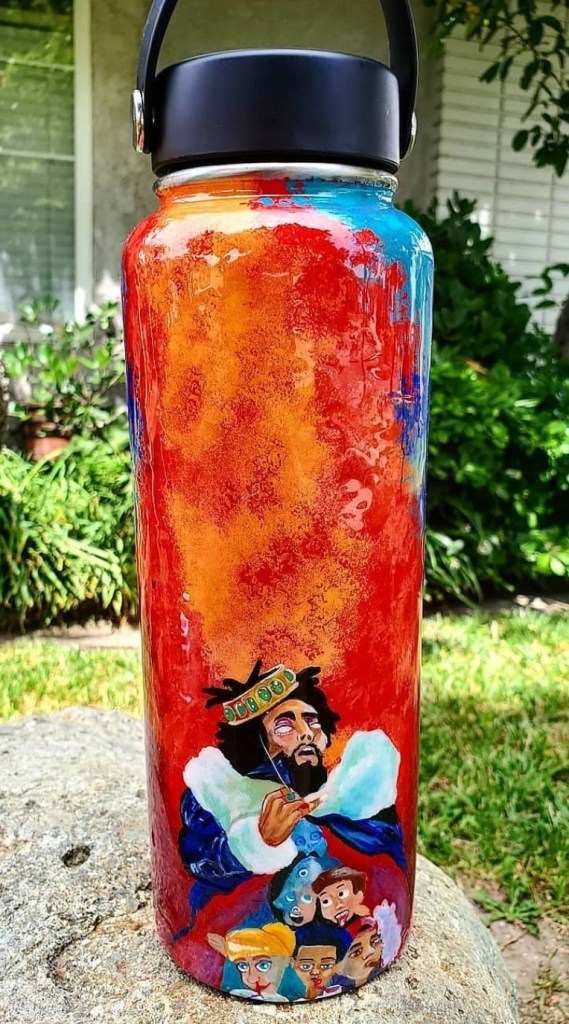Each painted bottle is uniquely hand painted on a high quality re-usable water bottle to the customer’s request. Acrylic paint is carefully used to bring the design to life and a food safe resin is applied and cured to ensure that no damage comes to the painting. The resin coating also provides an additional layer of protection to the bottle’s original integrity. Contact to Order.