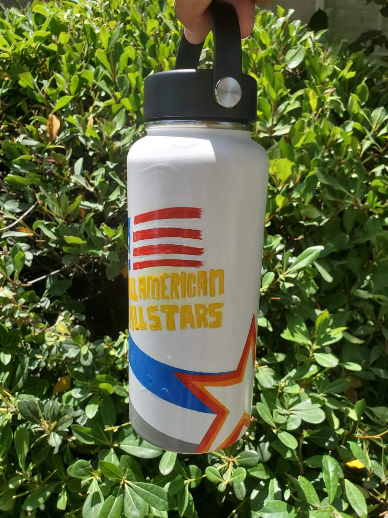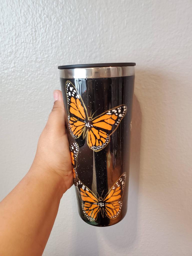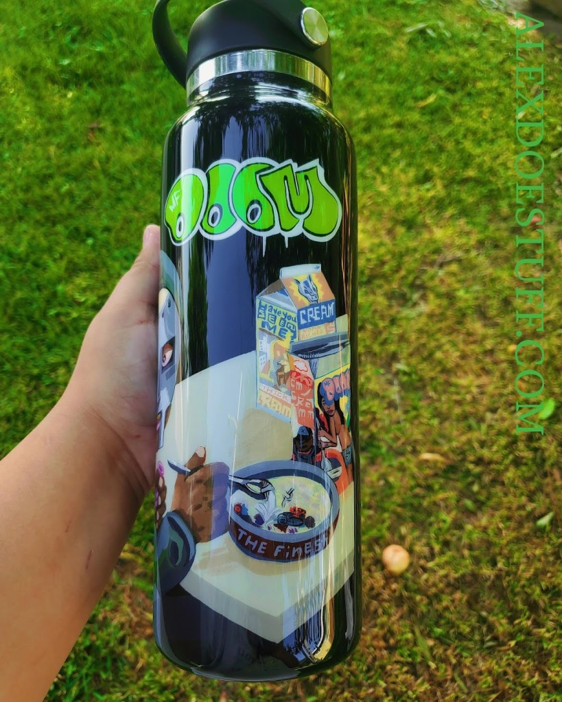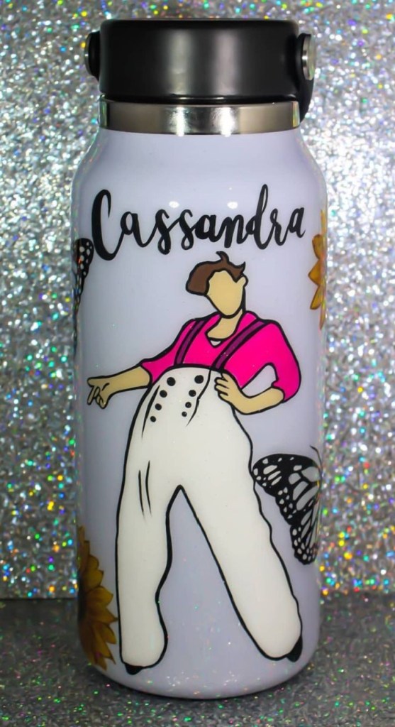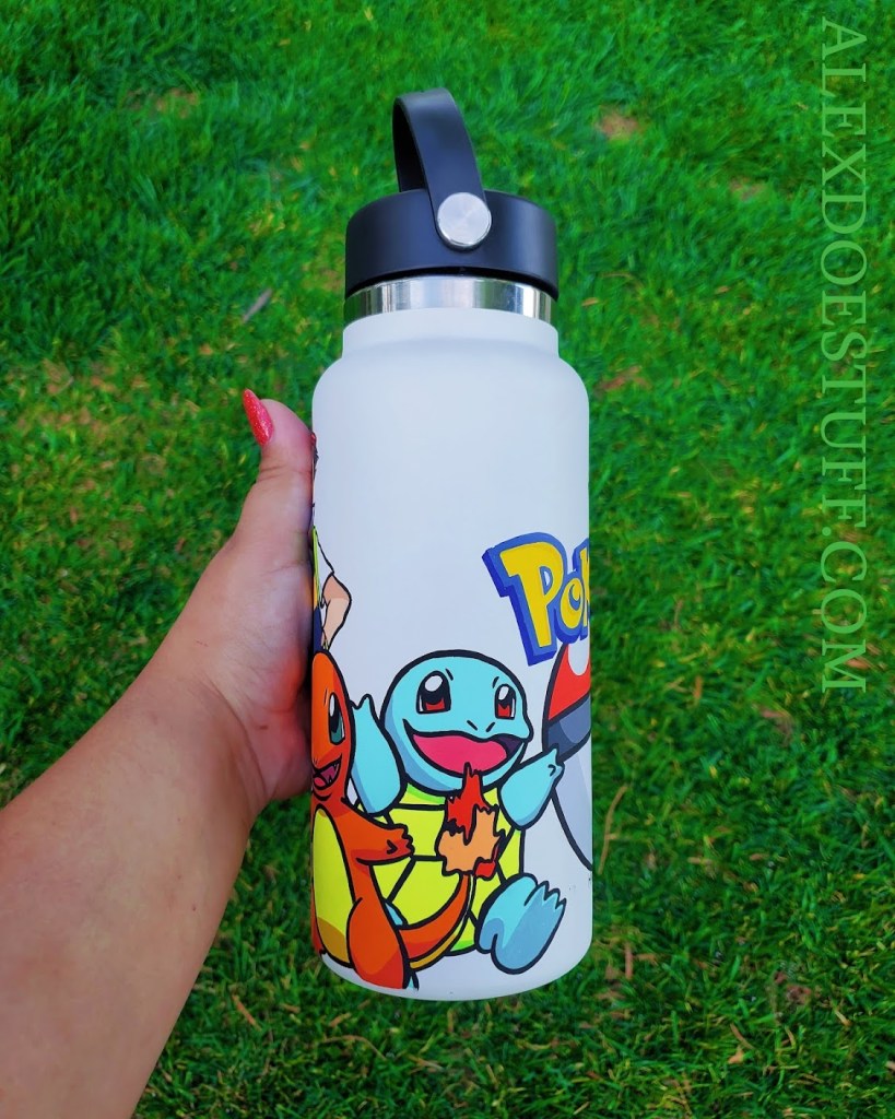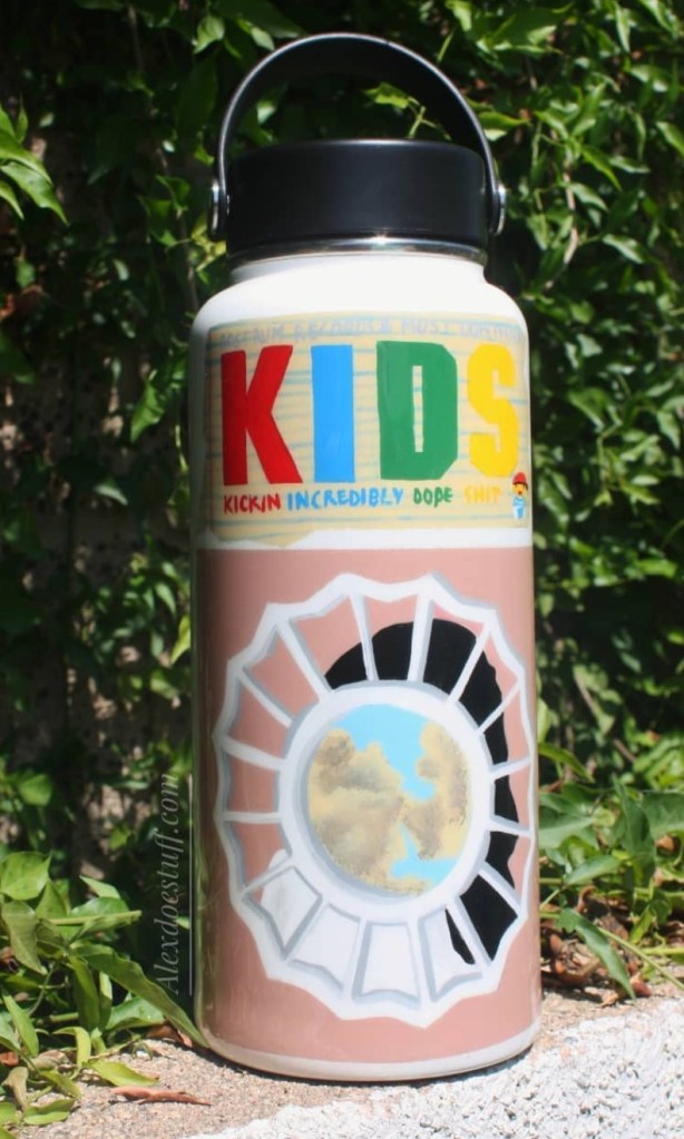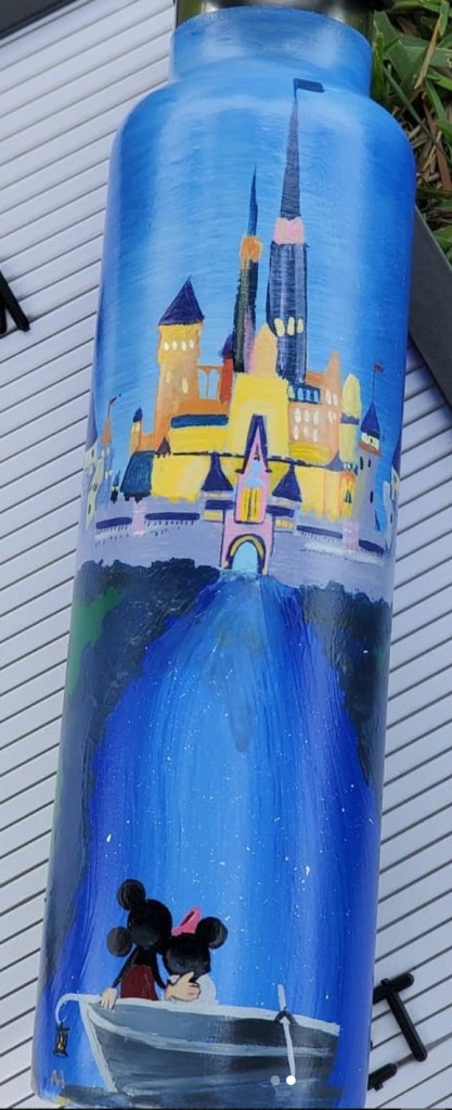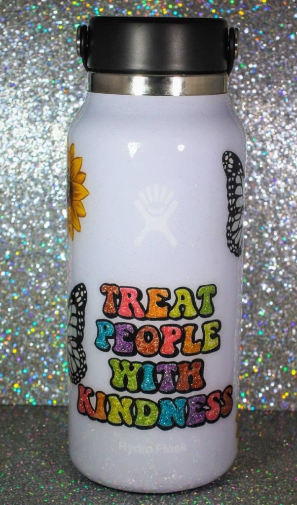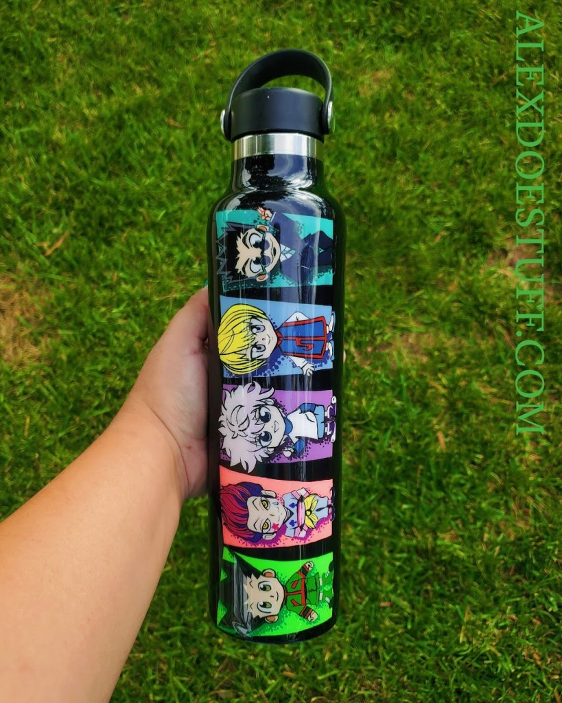 Each painted bottle is uniquely hand painted on a high quality re-usable water bottle to the customer’s request. Acrylic paint is carefully used to bring the design to life and a food safe resin is applied and cured to ensure that no damage comes to the painting. The resin coating also provides an additional layer of protection to the bottle’s original integrity. Contact to Order.