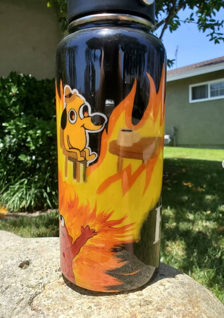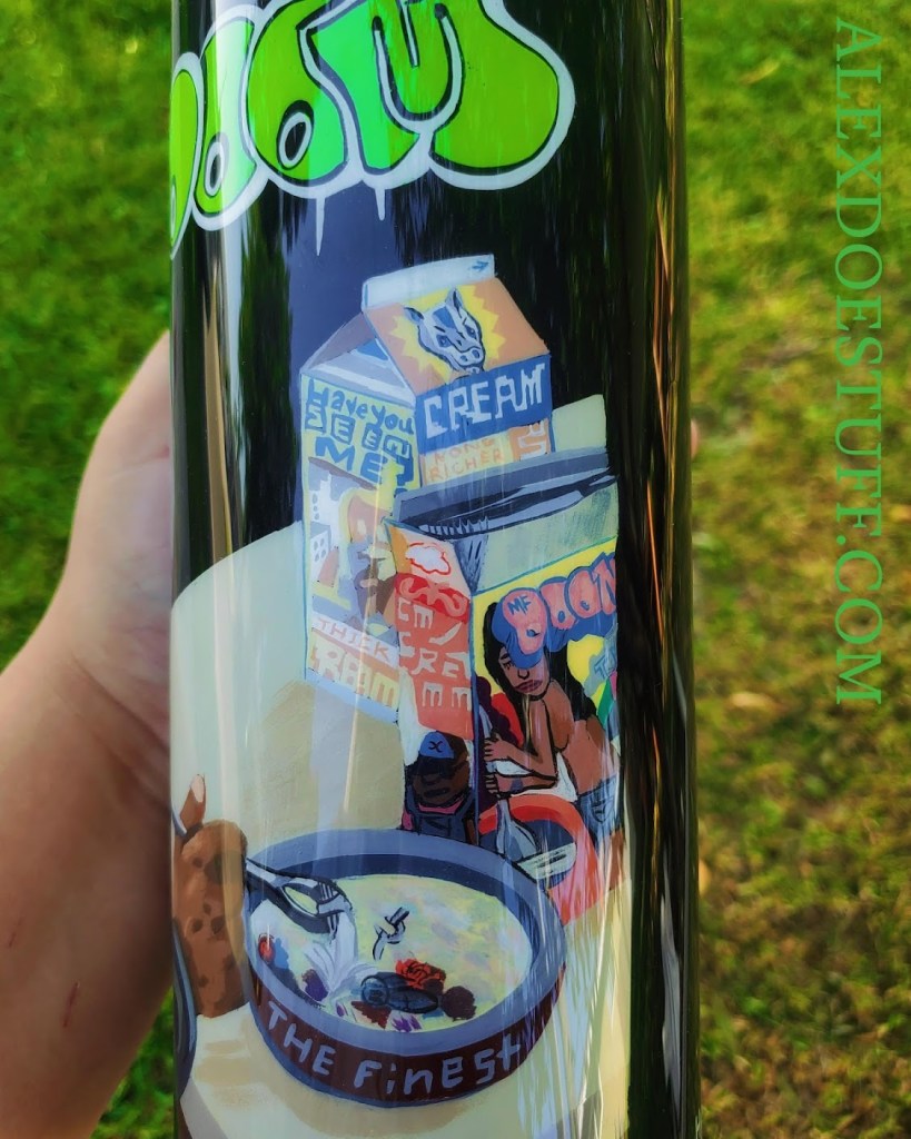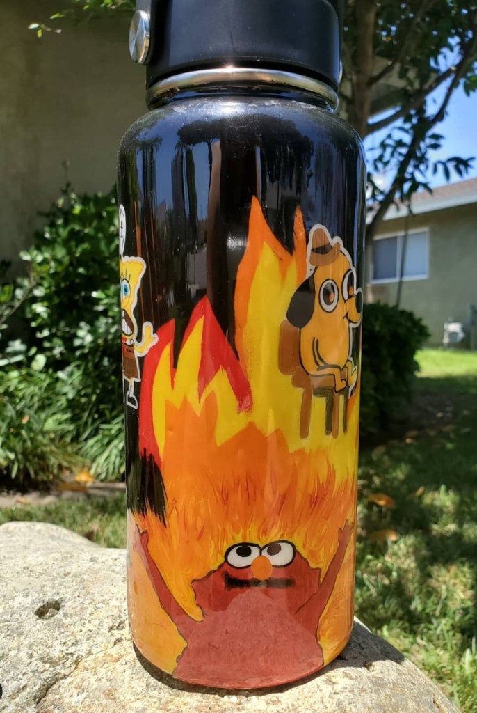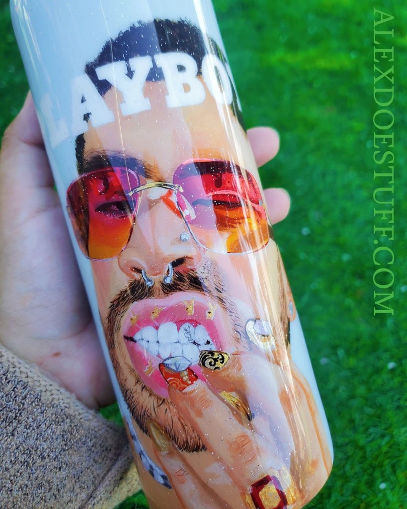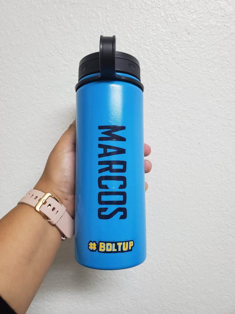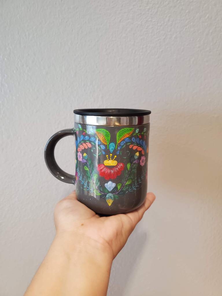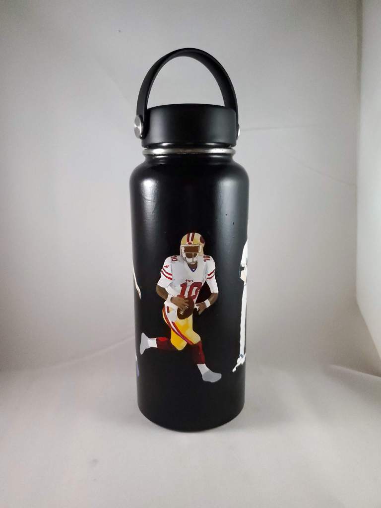 Each painted bottle is uniquely hand painted on a high quality re-usable water bottle to the customer’s request. Acrylic paint is carefully used to bring the design to life and a food safe resin is applied and cured to ensure that no damage comes to the painting. The resin coating also provides an additional layer of protection to the bottle’s original integrity. Contact to Order.